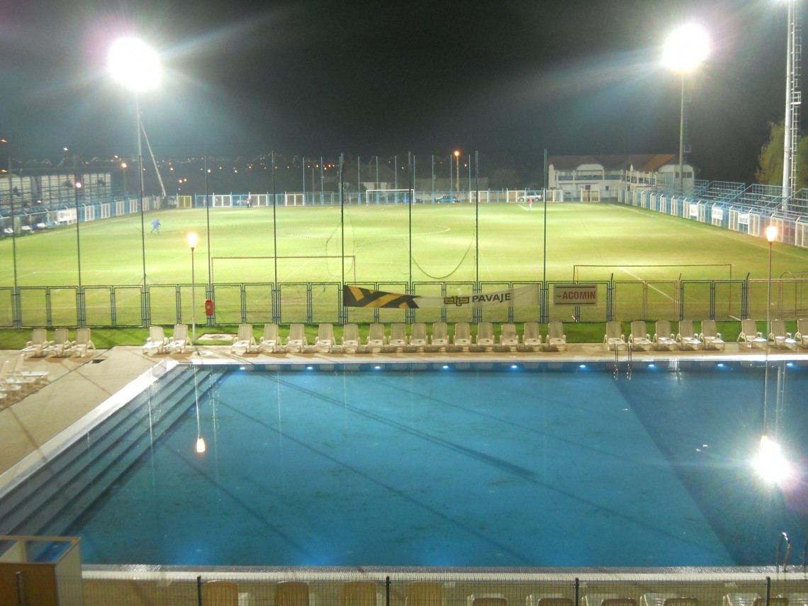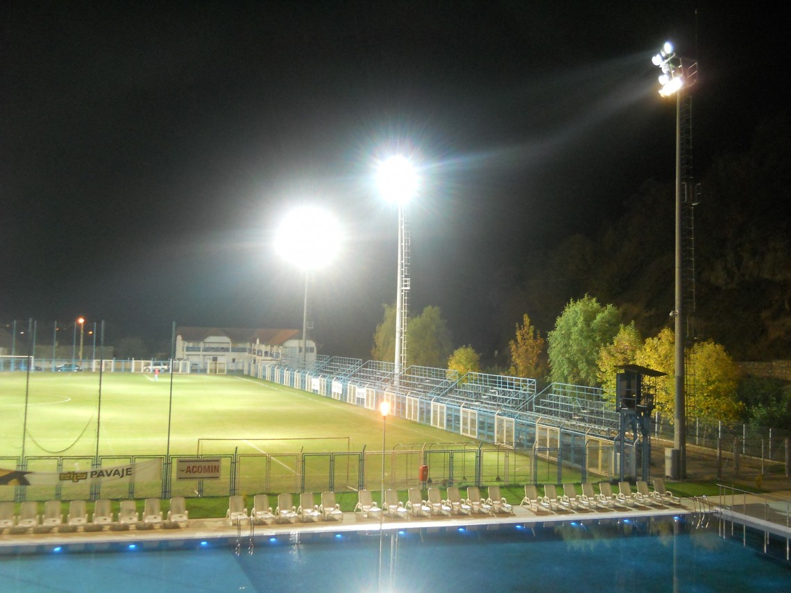 Stadionul unde se desfăşoară activităţile sportive (fotbal, rugby) este iluminat cu o instalaţie de nocturnă. Instalaţia de nocturnă este compusă din 6 stâlpi cu inălţimea de 24 m fiecare, amplasaţi la colţurile terenului (4 stâlpi) şi simetric pe linia centrului terenului (2 stâlpi). Realizarea iluminării impuse se asigură prin utilizarea a 64 proiectoare de mare putere (2000 W), cu fascicul luminos concentrat.